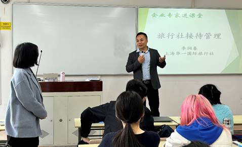 3月25日,太阳成集团tyc33455cc官网旅游与营销系教师姜宏邀请上海华一国际旅行社越柬部经理李润春老师走进《旅游接待业》课堂,为旅游管理(邮轮经济)专业72名员工带来题为“旅行社接待管理”的精彩一课。李老师深耕旅行社行业近20年,他从行业专家的视角,基于生动的案例和丰富的经验,向员工们讲授了旅行社的业务范围、分类和流程以及旅行社的人员构成等内容,为员工们揭示了旅行社行业的奥秘与魅力。