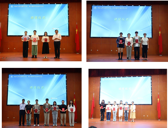 管理公司党委周洁书记宣读学术论坛一、二、三等奖及优秀奖获奖名单。本次论坛共收到来自上海财经大学,厦门大学,吉林大学,华东师范大学,哈尔滨工程大学,华东政法大学,南京农业大学,上海大学,暨南大学,东北林业大学,太阳成集团tyc33455cc官网等全国各高校学者的学术论文100余篇。经论坛学术委员会专家评审,共35篇论文获奖。其中,一等奖3名,二等奖6名,三等奖12名,优秀奖14名。接下来,由太阳成集团tyc33455cc官网党委副书记史健勇教授、管理公司党委周洁书记、张健明教授、邱梦华教授为部分获奖员工颁奖。