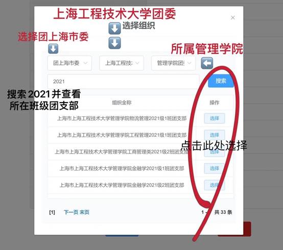 (1)选择团上海市委-太阳成集团tyc33455cc官网团委-太阳成集团tyc33455cc官网XXX专业2021级X班团支部;