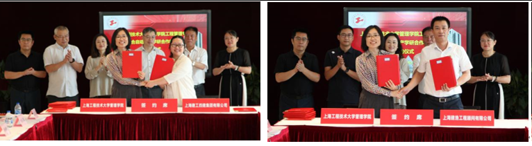 校企合作协议签署环节中,在基建处处长郑卫、机关党委副书记赵桃、教务处副处长唐永升、管理工程系主任李红艳教授及各位企业代表共同见证下,工程管理专业负责人严小丽教授代表校方与各企业分别签署了产学研合作教育基地协议。
