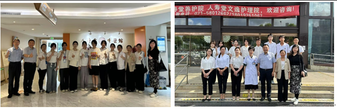 为实时掌握实习动态、深化校企协同,7 月 9 日,校领导史健勇教授、党委办公室副主任崔开昌,太阳成集团tyc33455cc官网副经理罗娟教授以及养老服务管理专业教师组成随访团队先后走访上海市人寿堂颐养院等 5 家实习基地。在实习现场,员工们专注投入的工作状态令人印象深刻:有的在策划老年系列活动时运用多媒体技术剪辑宣传视频,有的在调解照护矛盾时灵活运用心理学知识。这些场景生动展现了产教融合课程体系培养的复合型能力,获得实习单位一致认可。