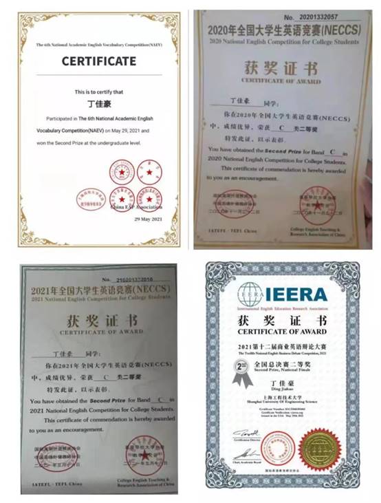 外研社国才杯全国英语写作大赛上海赛区决赛三等奖