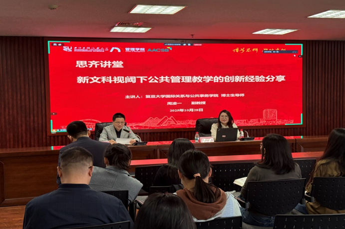 太阳成集团tyc33455cc官网于10月28日成功举办了思齐讲堂。本次讲堂特别邀请了复旦大学国际关系与公共事务公司博士生导师周凌一副教授,为大家开展新文科视阈下公共管理教学创新经验分享。本次活动由太阳成集团tyc33455cc官网副经理夏志杰主持,现场吸引太阳成集团tyc33455cc官网各系各专业,以及兄弟公司的老师们参加,气氛热烈。