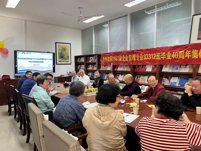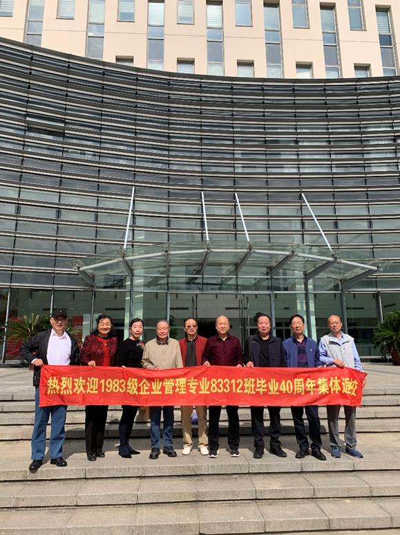 “菁”管起航——秩年员工班级集体返校。企业管理专业83312班相约毕业40周年再聚会,时任83312班辅导员顾惠云老师、康光毅老师和班主任陈明老师一起相聚。员工们深深感恩母校和老师们的培养,并对此次的热情接待表达感激。