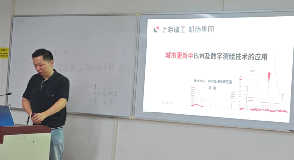 在中共中央办公厅、国务院办公厅《关于持续推进城市更新行动的意见》的指引下,城市建设将从“大基建”,转向更为精细化的“大修缮”,为了更加精准地对城市建筑开展更新、美化“手术”,全面提高城市韧性,就必须运用到BIM与数字测绘技术等多种信息化手段。2025年9月24日下午,《房地产开发与经营》课程上海建工集团下属的上海市机械施工集团有限公司的BIM及测绘研究室主任马良,为工程管理专业2023级员工分享了城市更新中BIM及数字测绘技术的应用案例。