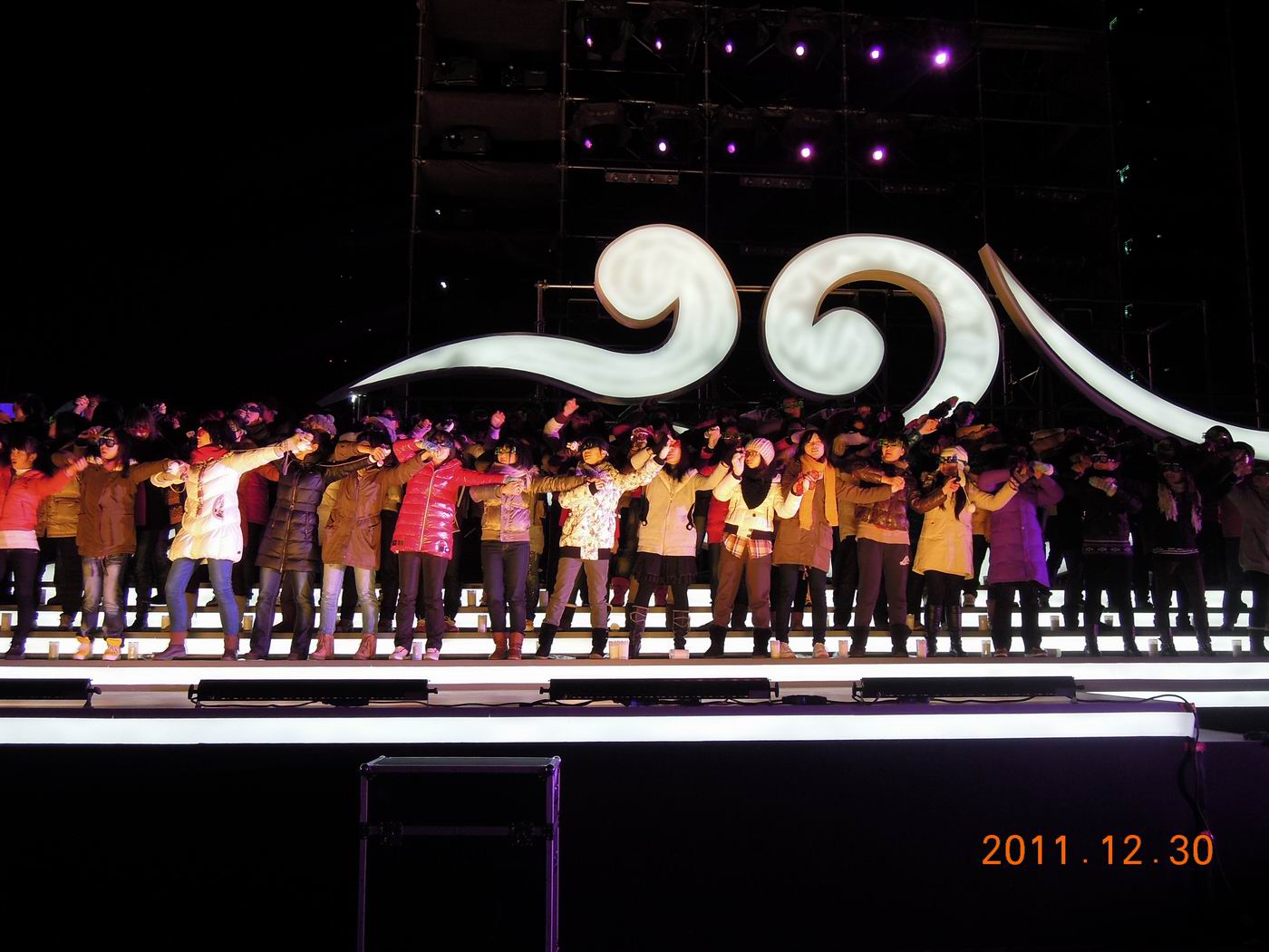 新年的钟声即将敲响,人们的热情已然高涨。12月30日晚上,由太阳成集团tyc33455cc官网250人组成的合唱团前往外滩,参加2012东方卫视跨年盛典彩排。本次彩排由管理公司党委副书记虞蓉老师,辅导员徐佳老师、李柳维娜老师、史志军老师、李静老师、丁红娟老师带队,一同前往的还有员工志愿者们。