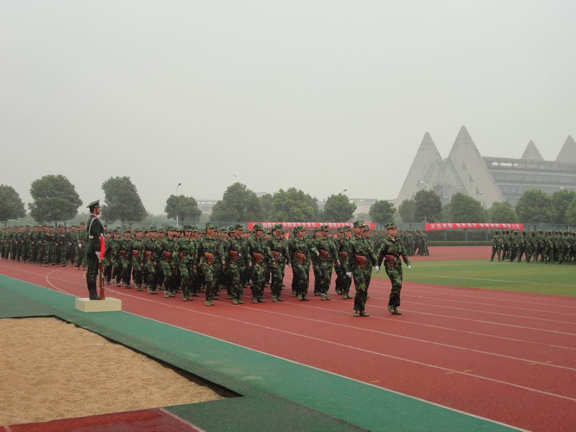 在接下来的分列式表演中,三营的方阵踏着进行曲的节拍,迈着整齐的步伐,喊着嘹亮的口号,规范有序地正步走过主席台。他们飒爽的英姿,坚定的眼神,展示了新生们昂扬的斗志与奋发向上的精神,更是博得了主席台上领导们的阵阵掌声。