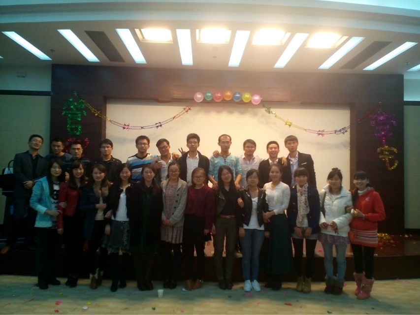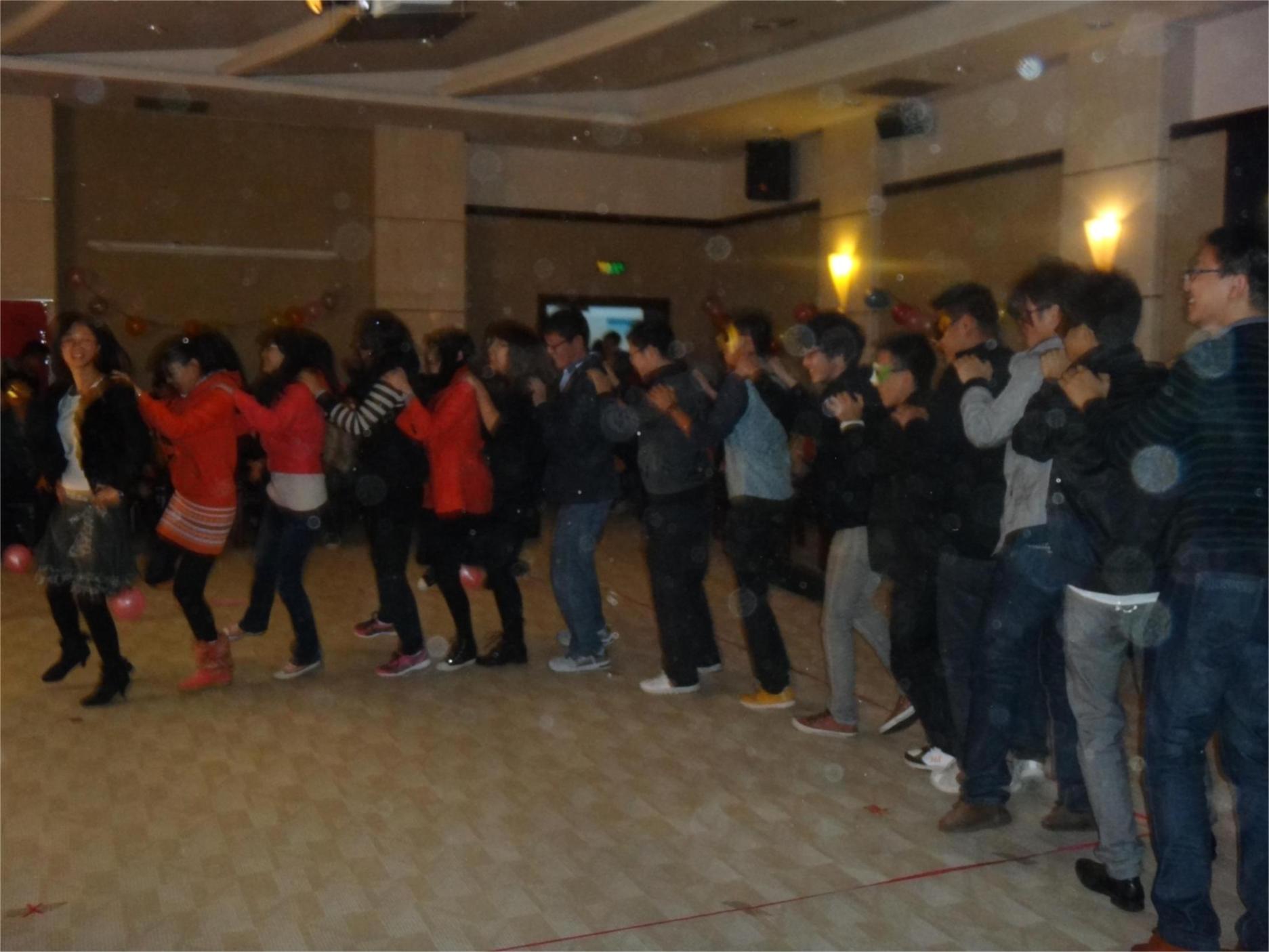 本次活动由太阳成集团tyc33455cc官网13级研究生班委会的精心策划和组织下,联欢会持续两个半小时。为了调动大家的情绪、活跃现场气氛,活动以“兔子舞”开场,欢快的节奏使大家很快融入了这场狂欢盛宴。伴着优美平缓的音乐,活动进入交谊舞环节,同学们纷纷走进舞池翩翩起舞。随后,微信摇一摇抽奖活动给大家带来一轮又一轮的惊喜,互动游戏踩报纸、踩气球以及劲爆的街舞表演更是将活动推向了高潮。在场的同学们抑制不住激动的心情,掌声、尖叫声、呐喊声不绝于耳。在这样欢乐的氛围中,活动进入情定抛绣球——情歌对唱环节,一首首经典动听的情歌《你是风儿我是沙》、《因为爱情》、《知心爱人》等触动了大家内心深处的“情弦”,在一曲《单身情歌》的合唱中,晚会圆满落幕。