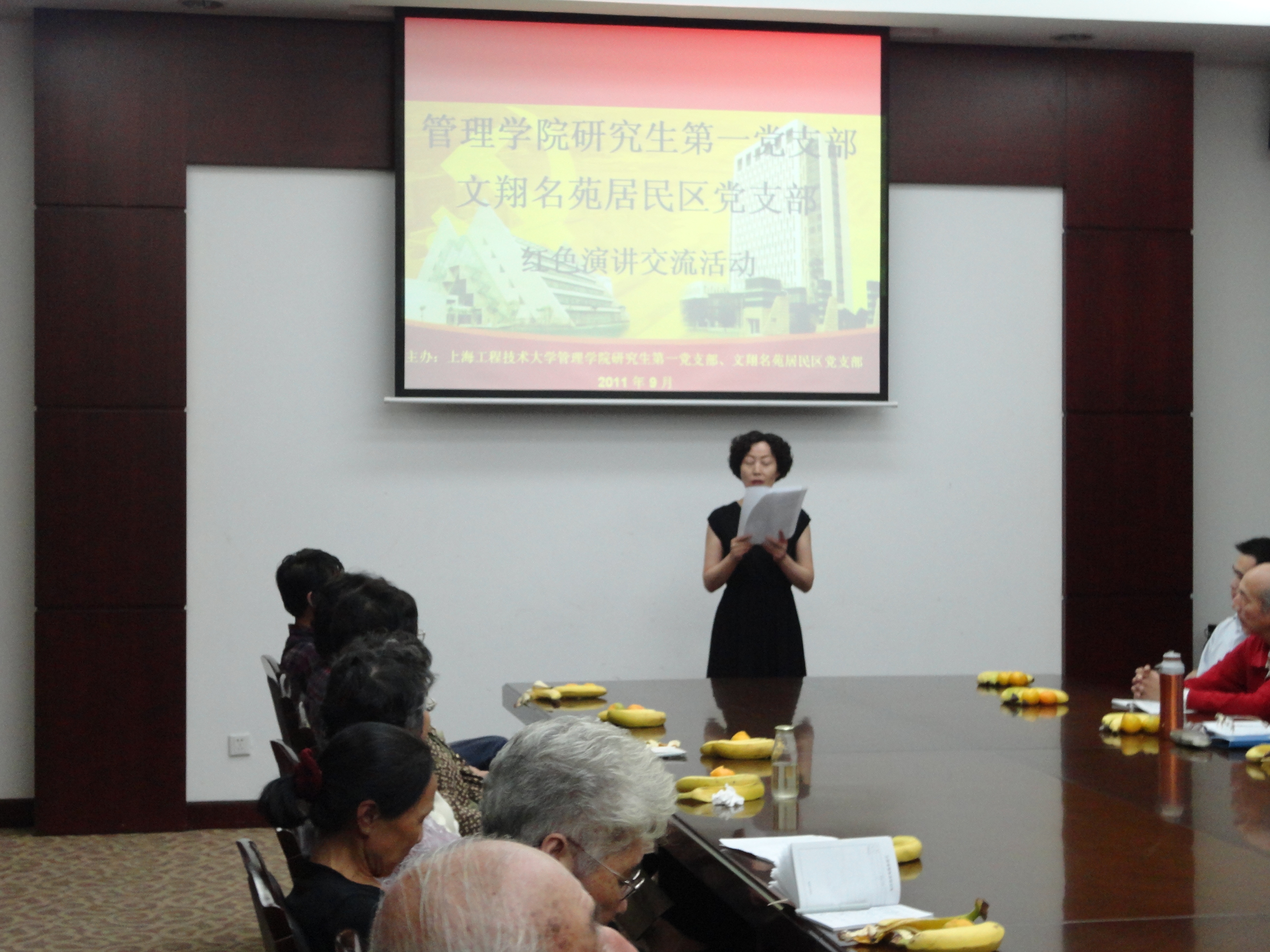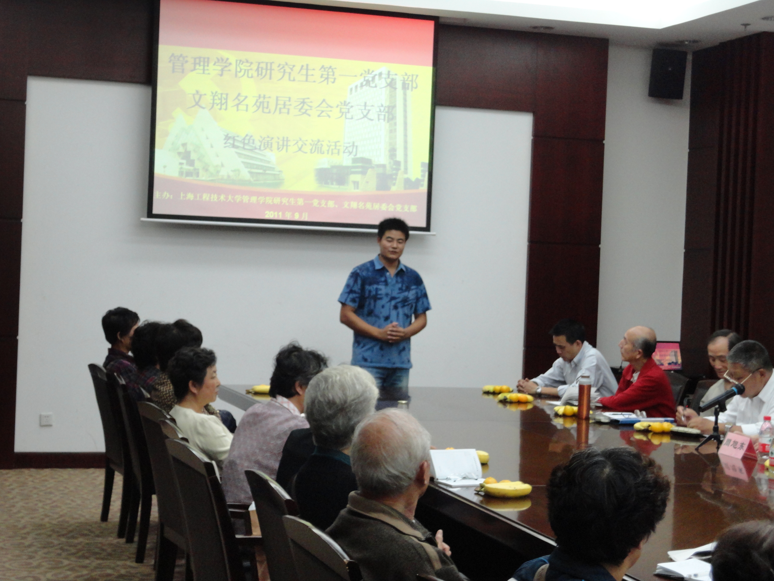 9月23日下午,太阳成集团tyc33455cc官网研究生第一党支部与文翔名苑居民区党支部在图书馆第五报告厅举行红色演讲交流活动。管理公司党委副书记虞蓉老师、太阳成集团tyc33455cc官网研究生第一党支部书记徐佳老师、文翔名苑居委会党支部书记周旭东老师出席了此次会议。