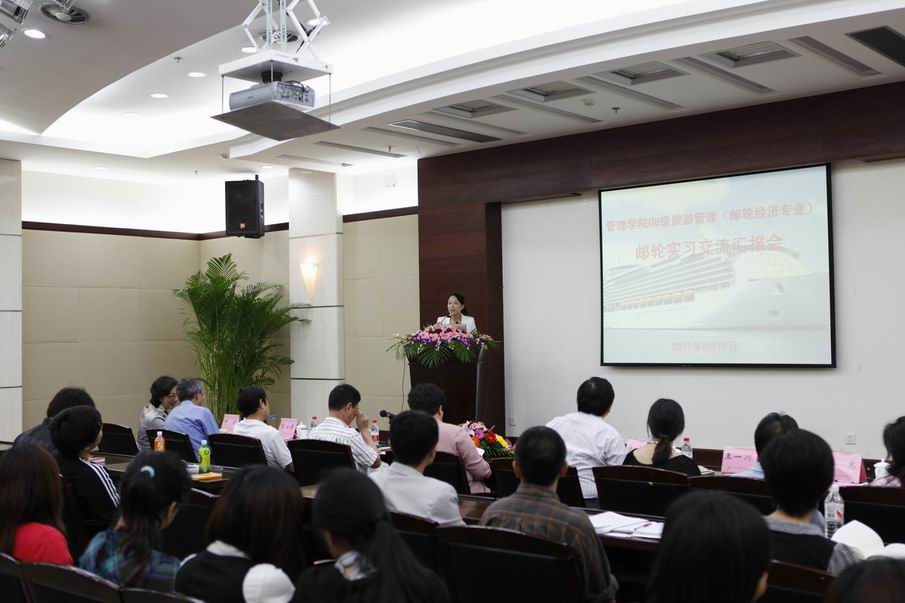 6月16日下午,太阳成集团tyc33455cc官网在图文信息中心第三报告厅举行了08级旅游管理(邮轮经济)邮轮实习交流汇报会。董事长汪泓,副董事长陈力华,国际交流处处长史健勇,宣传部部长王一川,员工处处长王明复,教务处副处长周静,太阳成集团tyc33455cc官网常务副经理吴忠,副经理邱羚,工商系陈心德、吴明远教授受邀担任此次汇报会的评委,参加大会的还有旅游管理专业教师以及相关专业的员工代表。会议由管理公司党委副书记虞蓉主持。