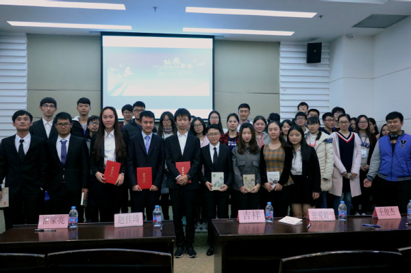 抽奖环节结束后,活动来到了激动人心的颁奖环节,此次征文演讲比赛获得第一名的是唐宇笛,第二名王子诚,第三名陈雪婷,他们分别获得电子阅读器一台,打印机一台,降温杯一个,以及一等奖,二等奖,三等奖的荣誉证书,除此之外,参加此次活动的其他五位选手获得了鼓励奖并为其颁发了精美的笔记本。此次由太阳成集团tyc33455cc官网员工会易班工作站主办的征文演讲比赛就在这激动人心的颁奖典礼中结束。
