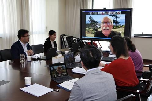 Dean Hu Bin reported on the progress of certification in the past year, and listened carefully to the tutor's opinions on how to continuously promote the development of the college against the new certification standards in the next stage. He also had in-depth communication with Lawrence Rose, the tutor, on the key points and details of the certification promotion plan, curriculum construction, hardware facilities renewal and so on. Tutor Lawrence Rose fully affirmed the phased achievements of AACSB certification of our school in the past, and gave specific suggestions on how to write iSER report. He looked forward to further communications with school leaders, college leaders and related teachers and staff, and hoped we can strengthen guidance and contact with the school, and promoted AACSB certification actively and solidly.