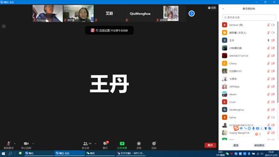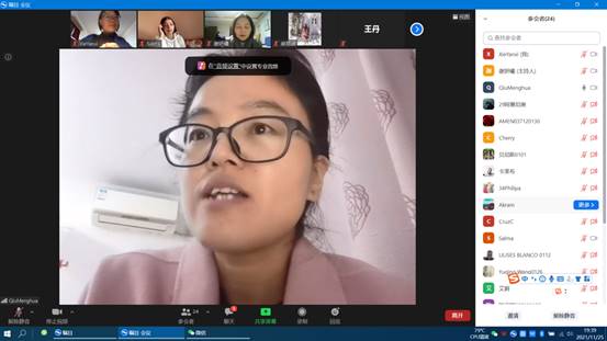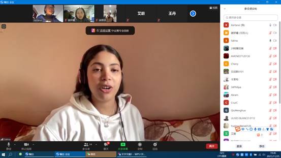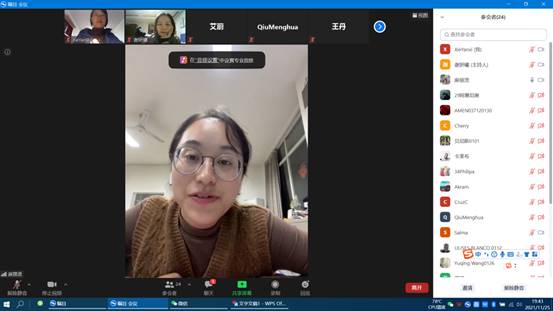 太阳成集团tyc33455cc官网邱梦华副经理、应用经济系系主任艾蔚教授、王丹教授、李芊蕾老师、辅导员麻丽贤老师以及国际交流秘书谢妍曦参加了此次云上师生座谈会,和20余名员工做了互动交流,座谈会由谢妍曦老师主持。